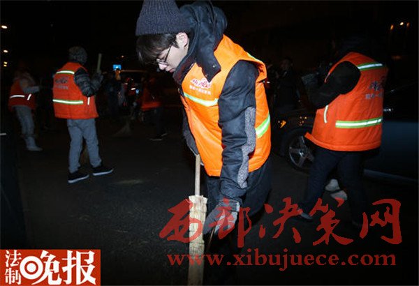 送完東西,韓紅等明星并未離場。凌晨5時許,他們拎起掃把跟在老環(huán)衛(wèi)工人身后,走進金寶街彎腰掃起了街道。隊伍中有李易峰、張一山和金池、春妮、李莉、尕讓鄧真、德姬等。張一山跟在韓紅身后,等韓紅掃成一小堆之后,將垃圾掃進鐵簸箕。“總說環(huán)衛(wèi)工辛苦,你不掃一回街根本不知道他們多辛苦。別怕人說咱作秀,讓他們來體驗一次就知道了。”韓紅說。