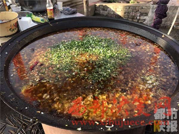 12月4日, 戶縣渭豐鎮(zhèn)元二村,村民們正在興高采烈的烹制著美味大餐,熱鬧非凡,頗有一種過大年的氣氛。熱氣騰騰的臊子面出鍋了,這第一碗面當然要親手端給今天這場特殊宴會的主角——百歲老人段奶奶。