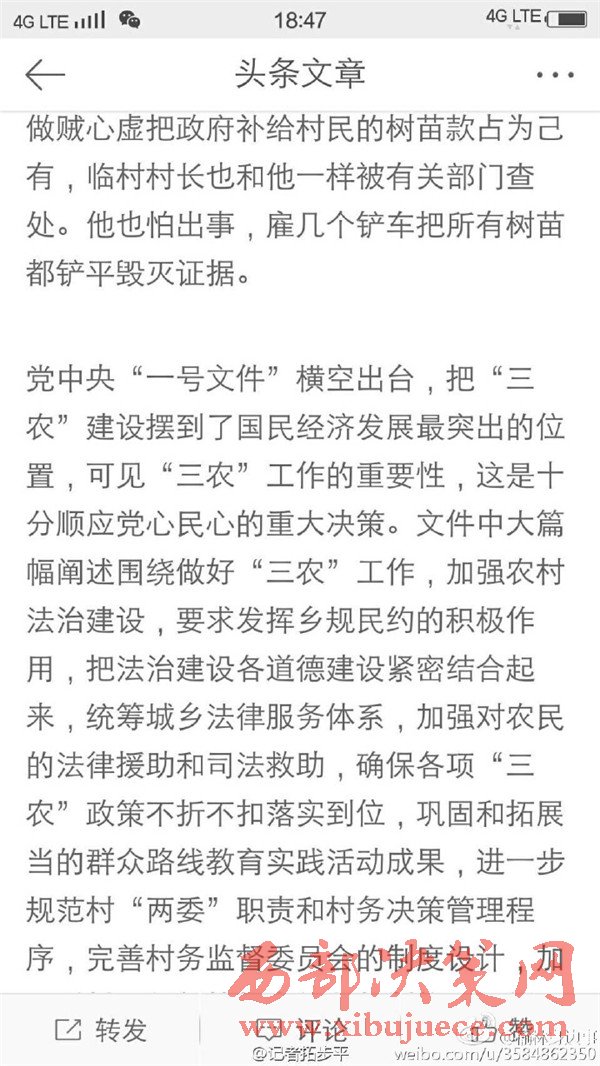 近日有微博網(wǎng)友飆新聞微博爆料:自被舉報(bào)人劉社平、王永占二人任職以來(lái),一手把持組委,視組委為自家私有權(quán)力,從來(lái)不向組民公布賬務(wù)。他們不但不為組民謀利,反而利用職務(wù)便利將村民集體數(shù)千萬(wàn)財(cái)產(chǎn)據(jù)為己有。請(qǐng)相關(guān)部門調(diào)查回復(fù)!