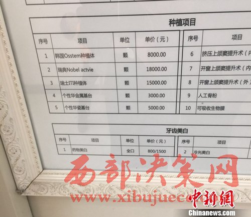 圖為北京一私立醫(yī)院的種牙項(xiàng)目?jī)r(jià)格。