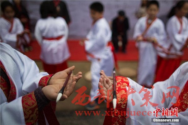 原標(biāo)題:南京孩童著漢服行古禮拜師傳孝道