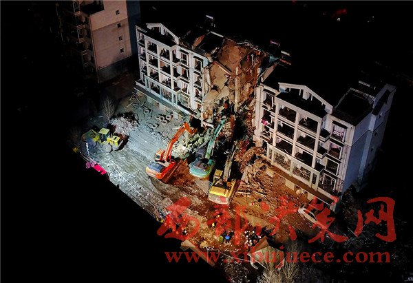 這是航拍的包頭市北只圖村向陽小區(qū)爆炸事故救援現(xiàn)場(3月25日攝)