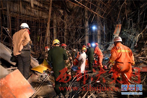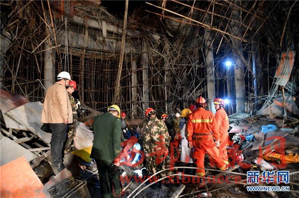 3月28日,救援人員在垮塌事故現(xiàn)場實(shí)施救援。