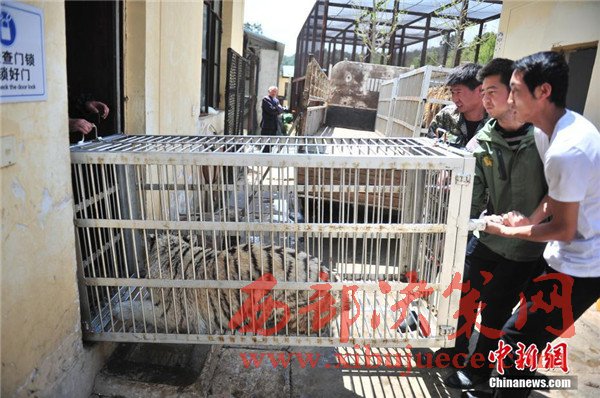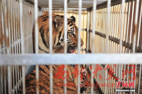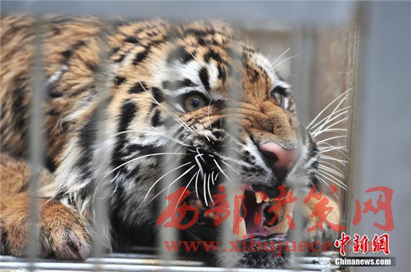 4月5日,關(guān)在籠子里的老虎。當日,云南野生動物園6頭老虎從繁育中心搬入散養(yǎng)區(qū),經(jīng)過一段時間的觀察適應(yīng)期后,就可以與游客見面。據(jù)工作人員介紹,在繁育中心人工飼養(yǎng)長大的老虎到繁殖年齡后,就會搬到有更大活動空間的散養(yǎng)區(qū)。云南野生動物園是中國十大老虎繁殖基地之一。