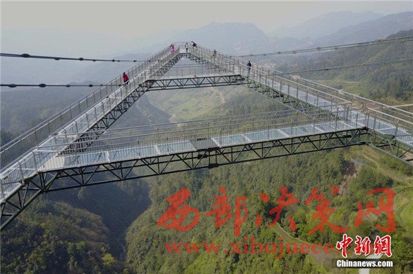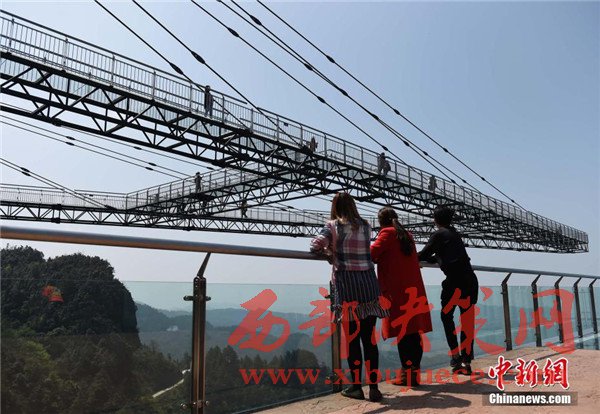 4月6日,重慶一景區(qū)內(nèi)“天空懸廊”吸引眾多市民前往體驗(yàn)。懸廊成“A”字形,橋面鋪設(shè)全透明玻璃,由于懸空于近300米高的懸崖峭壁之上,又沿懸崖向外延伸在80米的空中,因此取名為“天空懸廊”。相比美國科羅拉多觀景廊橋向外懸挑21米,天空懸廊向外懸挑80米更為驚險刺激。目前,該項(xiàng)目正在申請吉尼斯世界紀(jì)錄。