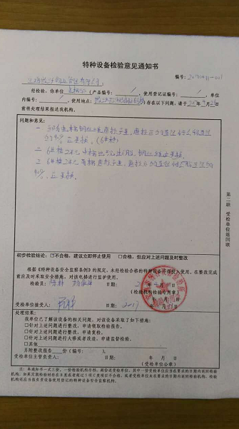 經(jīng)過特檢所現(xiàn)場檢驗(yàn),發(fā)現(xiàn)三部電梯鋼絲繩磨損嚴(yán)重,6號樓2單元中梯、北梯鋼絲均出現(xiàn)斷股,現(xiàn)場建議更換鋼絲繩,后出具特種設(shè)備檢驗(yàn)意見通知書,對于檢查出的問題要求立即停止使用。