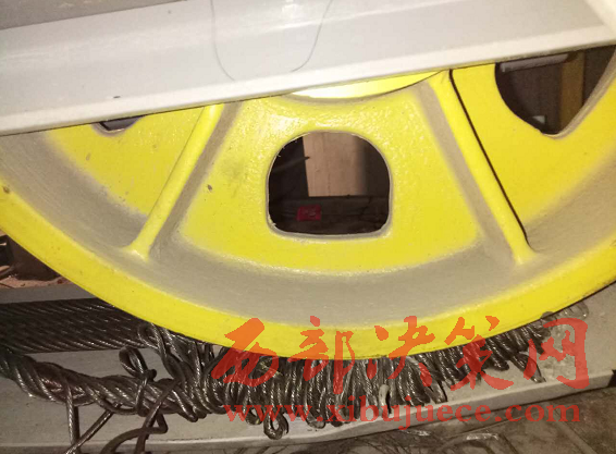 4月14日,西部大開發(fā)工作人員來到凱躍歐洲城,見到凱躍物業(yè)的尹經(jīng)理,說明來意后,尹經(jīng)理說,6號樓確實(shí)有五部電梯,其中有三部電梯在每月的電梯安檢時發(fā)現(xiàn)鋼絲繩有安全隱患,其中一部電梯鋼絲部分開叉,已經(jīng)絞到滑輪下面,如果繼續(xù)使用,會有安全問題。所以物業(yè)公司3月份就找到寶雞市特種設(shè)備檢驗(yàn)所(以下簡稱特檢所),要求現(xiàn)場檢查電梯到底是否能安全,能否繼續(xù)使用。