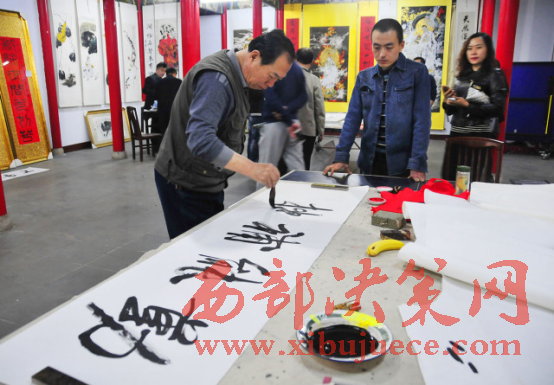 西部決策網(wǎng)-西部大開發(fā)訊(胡玉敏 通訊員 李海其 胡玉軍)4月13日下午,河北省邢臺市橋西區(qū)知聯(lián)會、邢臺市橋西區(qū)政協(xié)第三委員小組,在紫金公園聚義廳開展了書法文化交流活動?;顒犹匮沂兄麜嫾椰F(xiàn)場揮毫潑墨,切磋書畫技藝,創(chuàng)作作品20余幅。民盟市委副主委付曉婭,橋西區(qū)政協(xié)主席張建波、區(qū)政協(xié)副主席趙振群、王之良等領(lǐng)導應邀參加。
