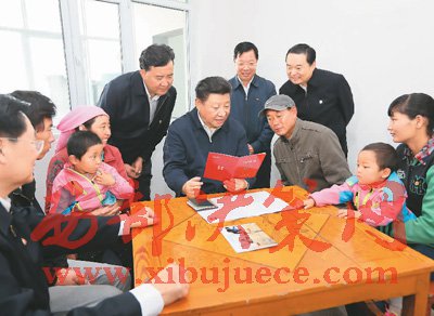 2016年8月23日上午,習近平在青海省海東市互助土族自治縣五十鎮(zhèn)班彥村村民呂有金家察看《扶貧手冊》,了解扶貧措施落實情況。
