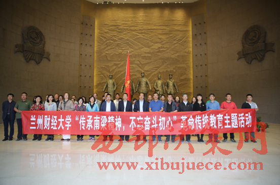 西部決策網(wǎng)-西部大開(kāi)發(fā)訊(李海瑞 芮永慶 通訊員 趙高銪)2017年5月20日,蘭州財(cái)經(jīng)大學(xué)黨委副書(shū)記王亦達(dá)一行走進(jìn)南梁紅色旅游景區(qū),在景區(qū)管委會(huì)辦公室主任張全鈺和南梁革命紀(jì)念館館長(zhǎng)聶明靜陪同下,開(kāi)展以“傳承南梁精神 不忘奮斗初心”為主題的革命傳統(tǒng)教育活動(dòng),實(shí)地參觀南梁革命紀(jì)念館和陜甘邊區(qū)蘇維埃政府(部委)舊址;并舉行“愛(ài)國(guó)主義教育基地”、“馬克思主義學(xué)院科研基地”揭牌儀式,王亦達(dá)、聶明靜、張全鈺先后致辭和揭牌,蘭州財(cái)經(jīng)大學(xué)及南梁革命紀(jì)念館干部職工80多人參加本次活動(dòng)。