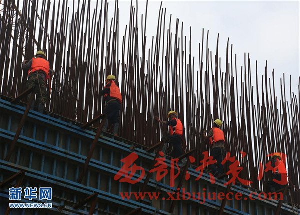 5月22日,中國(guó)鐵建二十二局的工人在蒙華鐵路贛江特大橋施工。