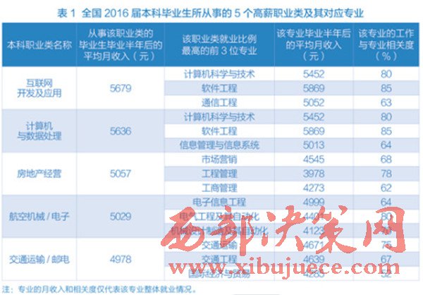 大學(xué)畢業(yè)生收入調(diào)查互聯(lián)網(wǎng)開發(fā)房產(chǎn)經(jīng)營(yíng)錢景好