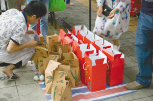 馬鞍東路“粽子江湖”的歷史大致要追溯到上世紀(jì)80年代。1980年,居住在馬鞍東路的李太婆,把自己包的粽子拿到院壩門口和附近的曹家巷農(nóng)貿(mào)市場賣,受到她的啟發(fā),“馬婆婆”周啟玉(隨夫姓,下同)拉著“梅婆婆”葉新芳和“任婆婆”張興碧籌劃起了粽子生意。那年開始,端午時(shí)節(jié),成都馬鞍東路的“婆婆粽”漸漸名聲在外。如今的馬鞍東路,到端午節(jié)前半個(gè)月就熱鬧開來。裁縫鋪、火鍋店、面館……臨街的商鋪都在這個(gè)時(shí)節(jié)改賣粽子。