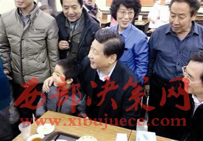 2013年12月28日,習(xí)近平在北京市月壇北路慶豐包子鋪吃午餐,期間與袁寶小朋友合影。