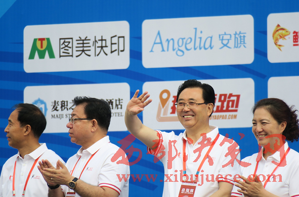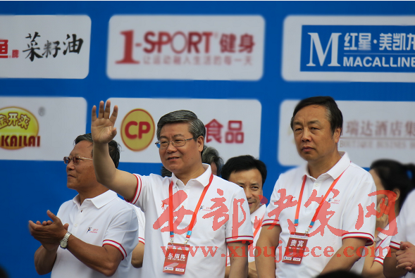 蘭州市委副書記、蘭州市政府市長欒克軍向運動員揮手致意(杜杰 攝)