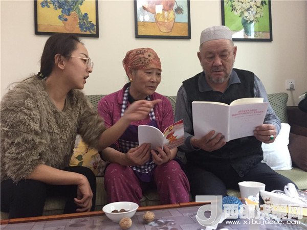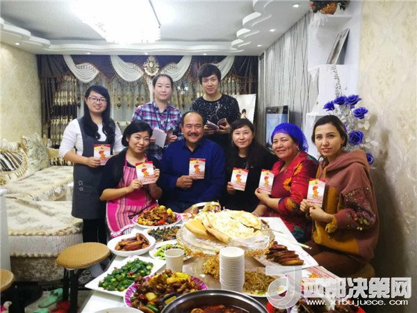 傍晚,一大群來(lái)自不同民族,不同單位的新疆兒女聚在了一起,紛紛加入到這個(gè)民族團(tuán)結(jié)的大聚會(huì)里,彈一首歡快悅耳的冬不拉,舞一曲深情優(yōu)美的賽乃姆,唱一首民族團(tuán)結(jié)的贊歌,將整個(gè)聚會(huì)推向高潮。賽買提·阿合買提高興地說(shuō):“我今天太開(kāi)心了!這個(gè)結(jié)婚紀(jì)念日太有意義了,你的親戚,我的親戚,變成了我們的親戚,以后這就是你們的家,你們要經(jīng)常來(lái)??!” 趁著大家都在興頭上,韓莉書記又拿出學(xué)校專門印制的《不忘初心 牢記使命-黨的十九大精神進(jìn)校園讀本》,熱情地為親戚們宣傳起十九大精神,給大家講起黨的好政策來(lái)。在得知艾來(lái)提·賽買提目前還沒(méi)有找到合適的工作,沒(méi)有穩(wěn)定收入的情況后,大家立刻表示愿意幫助他早日找到合適的工作,幫助他們解決最實(shí)際的困難,把溫暖送到他們的心坎中。大家唱唱跳跳,說(shuō)說(shuō)笑笑,其樂(lè)融融,在互幫互助中讓民族團(tuán)結(jié)之花越開(kāi)越艷。