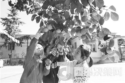 我們幼兒園面積大、歷史久,更可貴的是園中百余棵大樹郁郁蔥蔥。這里春日桃李芬芳,夏日楊柳依依,秋日石榴掛滿枝頭,冬日白雪落在柿子上,一處處皆是風(fēng)景。記得南京師范大學(xué)虞永平教授來我園參觀后,對(duì)冬季掛在樹上紅彤彤的柿子特別感興趣,覺得這是北方特有的景色,便問道:“柿子樹有幾種啊?分別什么時(shí)候長(zhǎng)果?果實(shí)什么時(shí)間可以摘呢?”說起來慚愧,雖然園中的柿子樹伴隨我從青蔥歲月到不惑年華,我卻不曾認(rèn)真仔細(xì)地觀察過這柿子樹,只是記得后勤老師一直念叨:“柿子樹寓意事事平安,是北方人對(duì)平安、幸福美好日子的一種期待。”