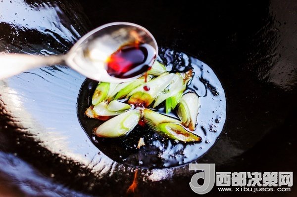 鍋里調進豉油,倒人少量清水大火炒成味汁。