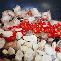 6. 將蒜片、紅辣椒、豆豉放進鍋中,煸炒出香味。