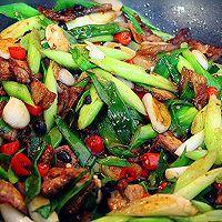 7. 將青蒜苗放進鍋中,大火煸炒勻均。