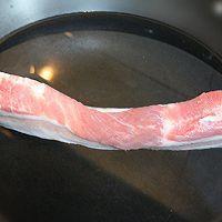5. 把五花肉放進鍋中,小火煸炒至出油,兩面金黃。