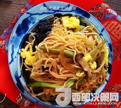 主料:細(xì)面條500克、輔料:豆角300克、木耳4朵、香菇4朵、大蔥1段、銀耳半朵、雞蛋2個、五花肉150克、醬油5勺、老抽1小勺、甜面醬3勺、鹽7克。