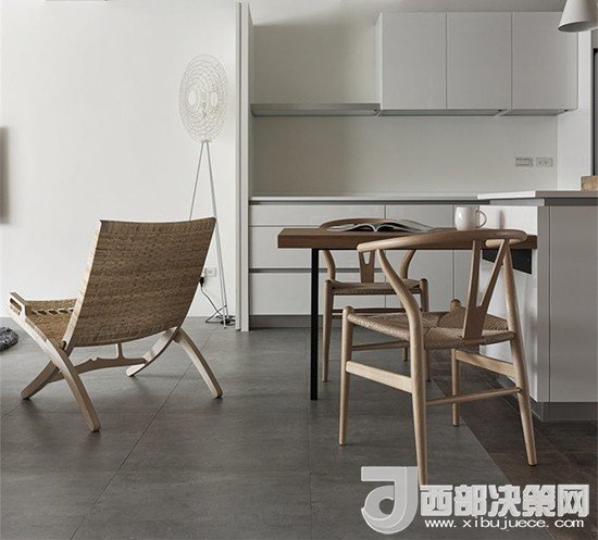 簡約的木制風(fēng)格中加上一把色調(diào)一致的藤椅,表現(xiàn)出了一種舊時(shí)的情懷。