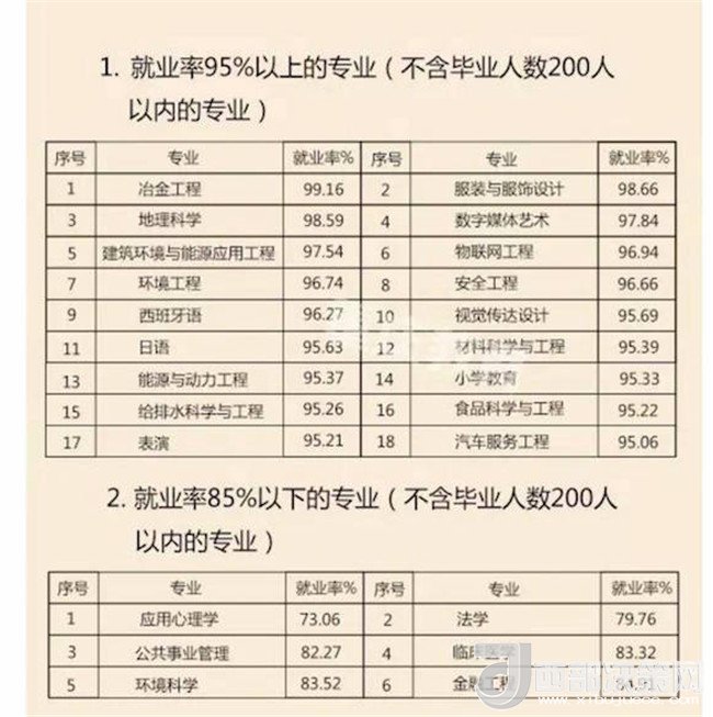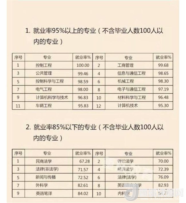 即將畢業(yè),你找到中意的工作了沒?近日,重慶市教委發(fā)布《重慶市2017屆普通高校畢業(yè)生就業(yè)情況報告》。據(jù)統(tǒng)計,2017年,全市共有普通高校畢業(yè)生約21.49萬人,截至2017年8月31日,我市2017屆普通高校畢業(yè)生就業(yè)率為89.65%,與2016屆同比上升0.56%。記者了解到,控制工程專業(yè)、藥品質(zhì)量檢測技術(shù)、汽車服務(wù)與管理等專業(yè),其就業(yè)率達100%。哪個專業(yè)就業(yè)前景“低調(diào)卻奢華”?哪個專業(yè)只是“看上去很美”?趕緊往下看吧!