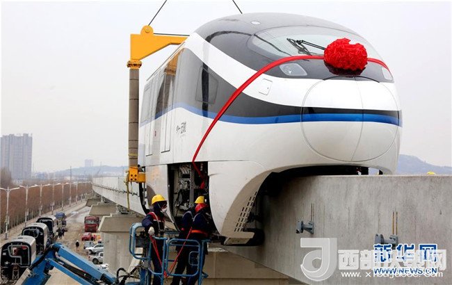 1月3日,在山東省鄒城市,工作人員進(jìn)行旅游云軌“孔孟旅游快線”機(jī)車上梁作業(yè)。當(dāng)日,孔子故里曲阜、孟子故里鄒城之間的云軌“孔孟旅游快線”完成機(jī)車上梁作業(yè)。這條旅游快線串聯(lián)起“三孔”景區(qū)、高鐵曲阜東站和曲阜南站、九龍山景區(qū)、孟廟孟府景區(qū)等。云軌是中國首條自主知識產(chǎn)權(quán)的跨座式單軌列車,類似于“空中小火車”,最高時(shí)速可達(dá)80公里。(呂衛(wèi)鋒 攝)