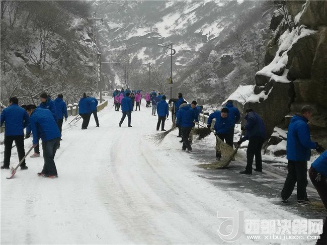 1月5日上午,集團從各單位抽調400余名員工赴黃甫峪和甕峪兩條進山公路再次清理冰雪。黃甫峪公路和甕峪進山公路是華山景區(qū)東、西兩條索道的必經(jīng)之路,因特殊的地形特點,山體陰面積雪較厚,路面結冰現(xiàn)象嚴重,清理難度較大。對此,集團統(tǒng)一指揮,緊密協(xié)作,首先對路面積雪進行了清掃,再用鐵鍬等工具對結冰進行深度清除,最后再對路面進行了細化處理,力爭進山公路盡快暢通。