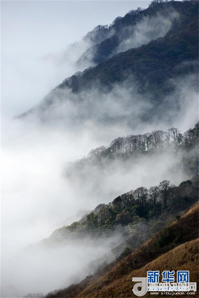 這是1月7日在貴州省黔東南苗嶺國家地質(zhì)公園拍攝的云海景觀。寒冬時節(jié),位于貴州省黔東南州的苗嶺國家地質(zhì)公園出現(xiàn)云海霧凇景觀,原始森林和草場在云海中若隱若現(xiàn),美若畫卷。(楊文斌攝)