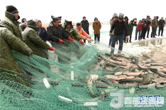 寒冬時節(jié),內蒙古巴彥淖爾市杭錦后旗鴻雁湖進入冬季捕魚季,湖面上呈現(xiàn)出一派“人歡魚躍”的豐收景象。