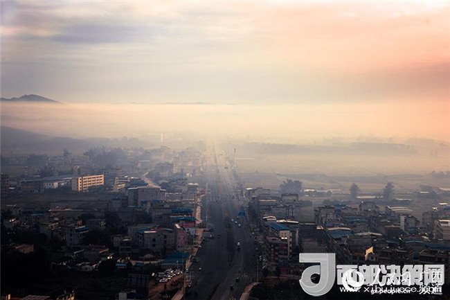 1月18日電1月18日,廣西上思縣城出現(xiàn)了平流霧奇觀,在朝陽渲染下的金黃色霧氣在低空緩緩地流動,樓房在霧氣中若隱若現(xiàn),宛若仙境。