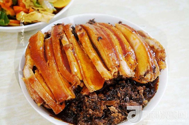 15.出鍋倒出盆內(nèi)的湯汁,將五花肉和梅干菜倒扣在碗內(nèi)