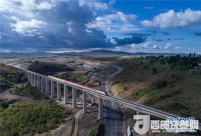 2017年5月12日,列車從肯尼亞蒙內(nèi)鐵路沿線的馬澤拉斯鐵路大橋上駛過。蒙內(nèi)鐵路連接肯尼亞首都內(nèi)羅畢和東非第一大港蒙巴薩,全長約480公里,是一條采用中國標(biāo)準、中國技術(shù)、中國裝備建造的現(xiàn)代化鐵路。記者陳誠攝