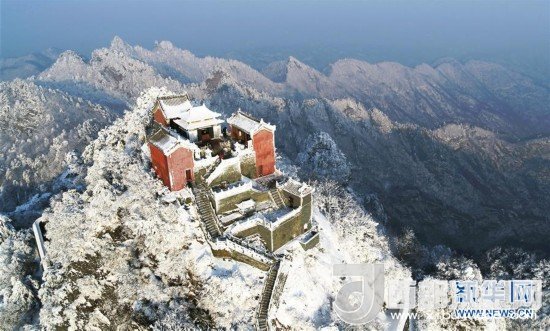 這是1月29日航拍的湖北武當(dāng)山金頂景區(qū)雪景。連日降雪讓武當(dāng)山銀裝素裹,金頂景區(qū)的建筑在白雪的裝扮下宛如瓊樓玉宇。 (陶德斌 攝)