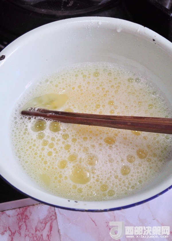 4.調(diào)成均勻的面糊,不要太稀,如酸奶般的稠度。如果口味重可以加點(diǎn)鹽。
