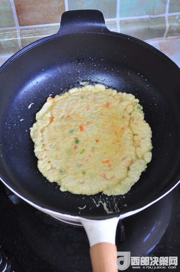 主料:胡蘿卜 10克  青椒 10克  培根 1片  雞蛋 50克  包菜 10克  面粉 40克
