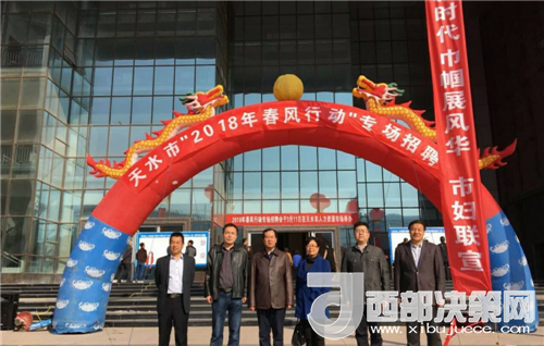 西部決策網(wǎng)——西部大開發(fā)訊(帥華鋒 通訊員 馬存福 漆小燕)為全面貫徹黨的十九大精神,助推鄉(xiāng)村振興戰(zhàn)略,打好脫貧攻堅(jiān)戰(zhàn),由天水市人社局、市扶貧辦、市總工會(huì)、團(tuán)市委、市婦聯(lián)聯(lián)合舉辦的天水市“2018年春風(fēng)行動(dòng)”專場(chǎng)招聘會(huì)于3月11日在天水市人力資源市場(chǎng)舉行。