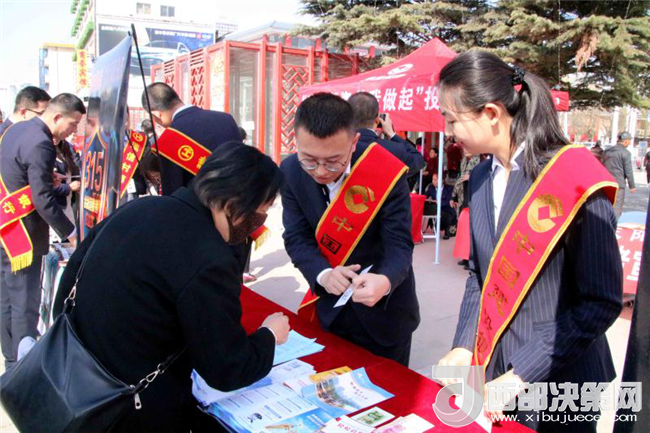 西部決策網(wǎng)——西部大開發(fā)訊(劉恒 齊彩云 通訊員 李海瑞 嵇祥)為進一步提高金融消費者的權責意識和風險意識,幫助其自覺遠離和抵制非法金融活動,引導金融消費者理性維權,構建和諧、綠色的金融消費環(huán)境,甘肅建行慶陽分行積極響應人行號召,于3月15日在東湖公園及各營業(yè)網(wǎng)點開展了,以“權利·責任·風險”為主題的消費者權益保護宣傳活動。