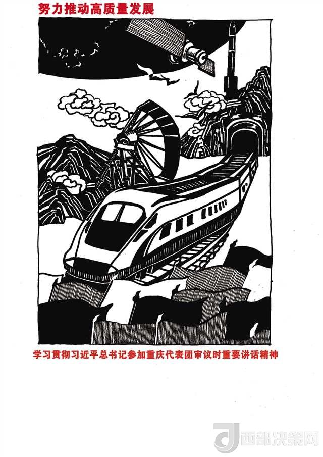 “每一個(gè)畫面,每一個(gè)細(xì)節(jié)都凝聚了師生們的心血。”版畫系副主任韋嘉介紹,13日上午,學(xué)院組織召開了黨委理論學(xué)習(xí)中心組(擴(kuò)大)會(huì)議,專題學(xué)習(xí)習(xí)近平總書記參加重慶代表團(tuán)審議時(shí)重要講話精神。會(huì)后,校黨委書記黃政、校長龐茂琨、校黨委副書記左益、學(xué)校宣傳部部長賈安東、學(xué)校思政部主任陳勇、版畫系黨總支副書記陳斌等人對(duì)文字方案進(jìn)行了反復(fù)討論,最終確定了相關(guān)主題。16名學(xué)生和版畫系9名教職工黨員當(dāng)晚便開始參與作品創(chuàng)作。