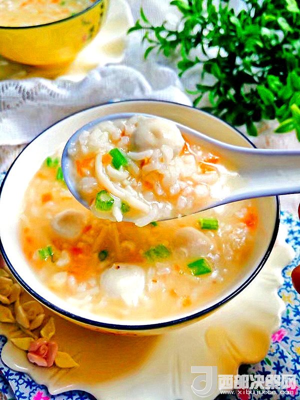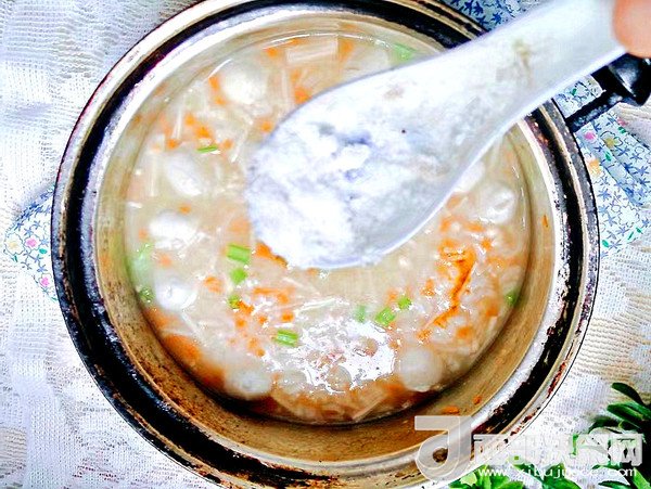 做給寶寶吃的蔬菜粥,寶寶不愛吃蔬菜,這不像方法做給他吃,胡蘿卜切丁,加入肉丸熬煮鮮美又營養(yǎng)