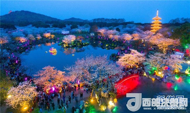 近日,武漢東湖櫻花園的櫻花競相綻放。園區(qū)還在夜間開啟裝飾燈光,供游客在夜色中觀賞,吸引大量游客前來踏春賞花。 新華社記者 熊琦 攝