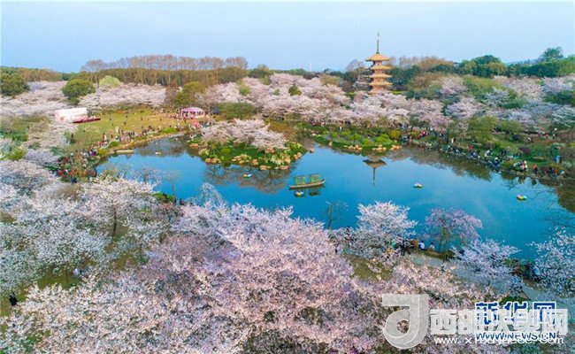 武漢:櫻花繽紛醉游人