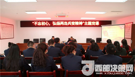 參觀結(jié)束后,兩當(dāng)兵變紀(jì)念館、兩當(dāng)縣國家稅務(wù)局黨員干部于二樓會議室開展“不忘初心,弘揚兩當(dāng)兵變精神”主題黨課及研討活動,兩當(dāng)兵變宣教科負責(zé)人、副研究館員茍昌盛同志就兩當(dāng)兵變精神作了深刻闡述。他以時間為序,從自古英雄出少年、提著腦袋搞兵運、兵變打響兩當(dāng)城、等待時機再出征、精神永存豐碑聳五個方面,把大家?guī)У搅四莻€戰(zhàn)火紛飛的年代,近距離的了解了兩當(dāng)兵變的全過程,對兩當(dāng)兵變那段光輝歷史有了更深刻的認識。