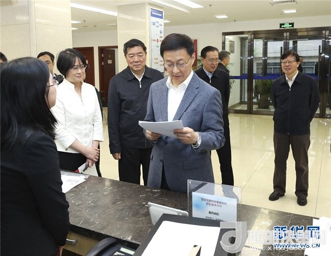 4月3日,中共中央政治局常委、國務院副總理韓正到國家發(fā)展改革委調研并主持召開座談會。這是韓正在國家發(fā)展改革委政務服務大廳考察。新華社記者 龐興雷 攝
