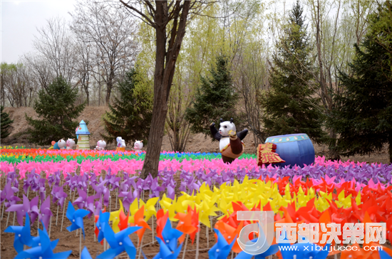 據(jù)現(xiàn)場負責人介紹,此次風車節(jié)共組裝風車30萬支用于打造風車花海、七彩風車長廊、兒童樂園為主題的三處樂園,五顏六色、形態(tài)各異的風車組成的“風車陣”,古樸的木道長亭組成的“七彩風車長廊”,絢麗綻放的桃花組成的“風車花海”,形成了浪漫溫馨的童話世界。