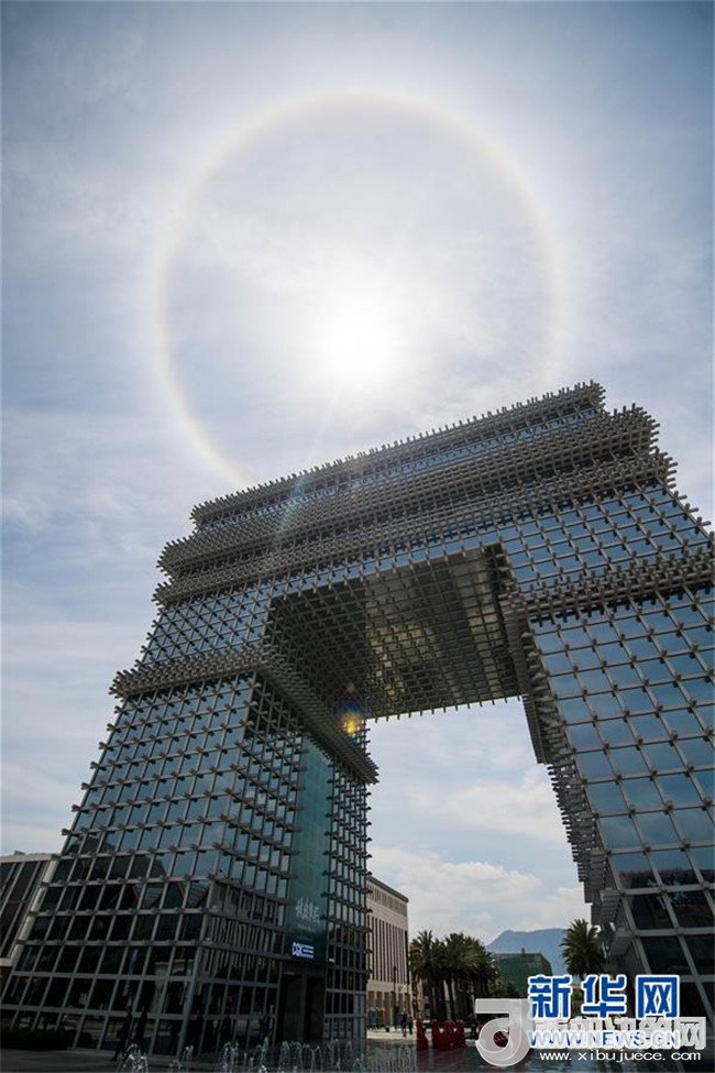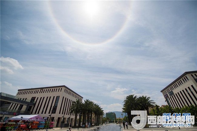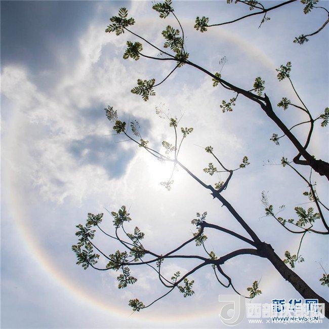 當(dāng)日中午,云南省昆明市上空出現(xiàn)日暈景觀。記者胡超攝