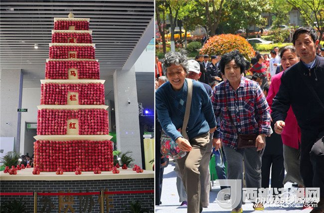 展館里3000多個(gè)陜西大蘋果堆出的大雁塔格外醒目,兵馬俑機(jī)器人作為陜西蘋果宣傳大使,能回答觀眾提出的各種問題,尤其是陜西蘋果方面的問題,沒有它回答不出來的。