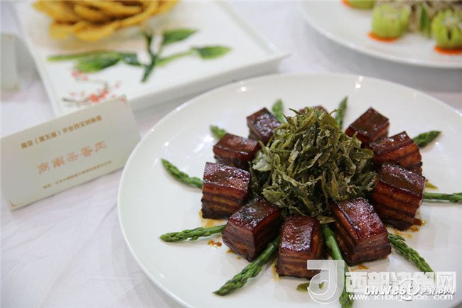 蘋果、獼猴桃、秦川肉牛、茶葉、羊奶等陜西農(nóng)業(yè)五寶做成的菜品不但好吃還好看。“蘇陜協(xié)作•2018年陜西特色農(nóng)產(chǎn)品南京宣傳推介周”以“推介特色產(chǎn)品、助力產(chǎn)業(yè)扶貧”為主題,由陜西省農(nóng)業(yè)廳與江蘇省農(nóng)委共同主辦??傉褂[面積8000多平方米,來自陜西的100余家企業(yè)帶來了200多種琳瑯滿目的特色農(nóng)產(chǎn)品。